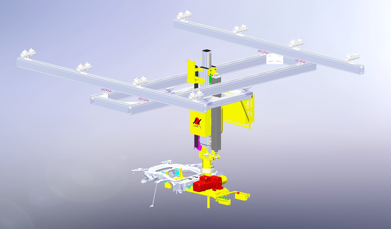 T型助力機(jī)械手,最大特點(diǎn)為剛性導(dǎo)向結(jié)構(gòu),可配合不同提升動力機(jī)構(gòu)(低摩氣缸、氣動平衡器、電動伺服器,電葫蘆等)來實(shí)現(xiàn)工件的上下運(yùn)動(浮動),配備非標(biāo)定制夾具可實(shí)現(xiàn)工件3維空間的各項(xiàng)搬運(yùn)裝配姿態(tài)。使用時,配合KBK軌道增加運(yùn)動范圍,具有結(jié)構(gòu)剛性強(qiáng),抗扭抗偏心,適用性更強(qiáng)。